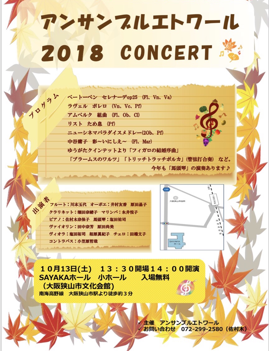アンサンブルエトワールコンサート さやかホール にて 2018/10/13
