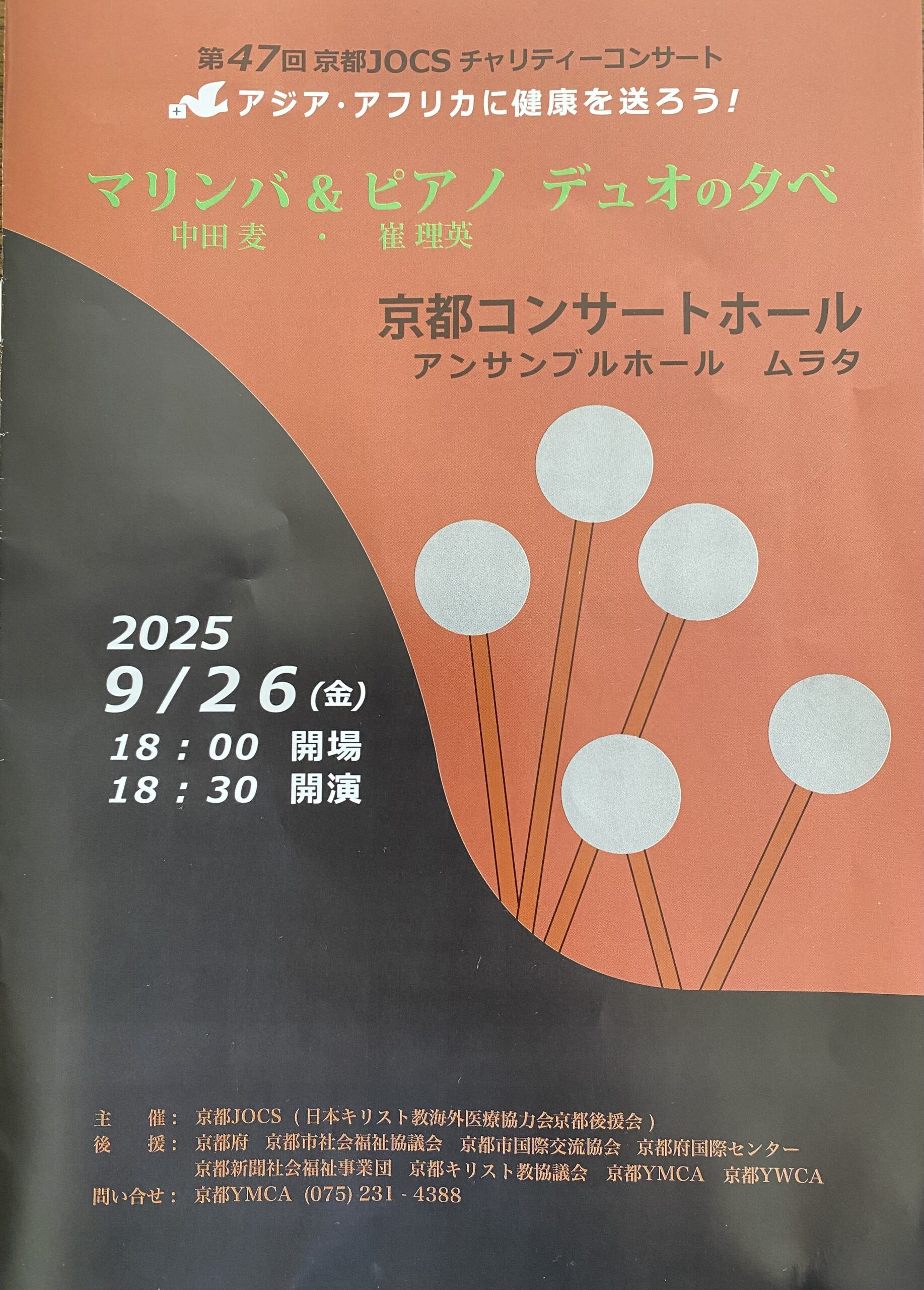 2025年9月26日(金)京都コンサートホールにて中田麦・崔理英マリンバ&ピアノ デュオの夕べ